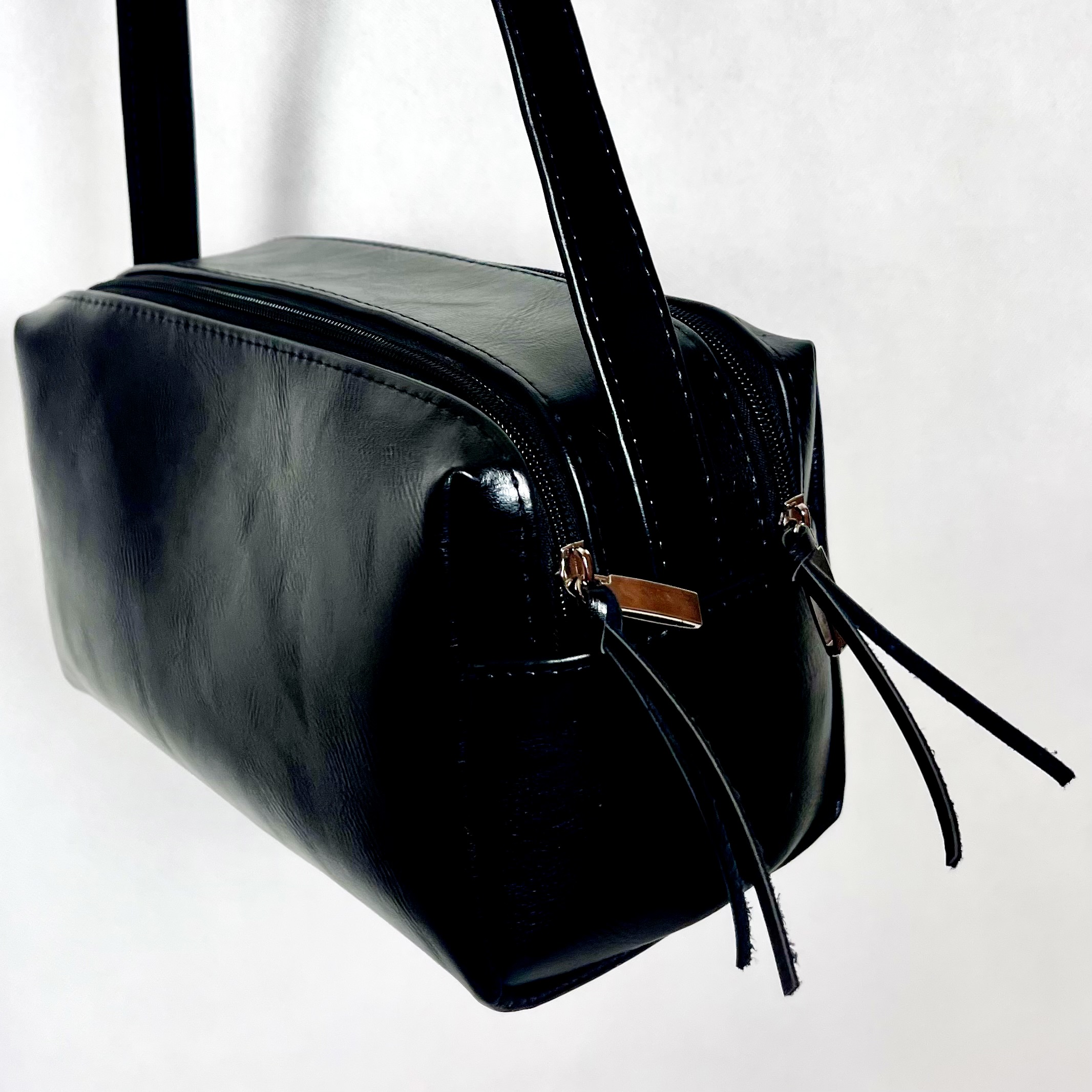 این محصول از جنس چرم صنعتی درجه یک و بسیار سبک میباشد . کیف دو زیپ دارای دو قسمت مجزا است که در هر بخش جیب های کوچک برای قرار دادن وسایل کوچک در نظر گرفته شده است. این کیف دارای بند دوشی قابل تنظیم میباشد.